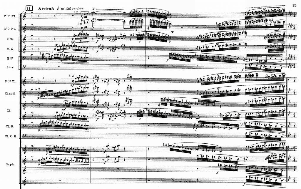 原譜にはないAlt.Cla.やSp.Sax.が加わり、Cb.Sarr.の代用でしょうか?Cb.Fg.も見られます…