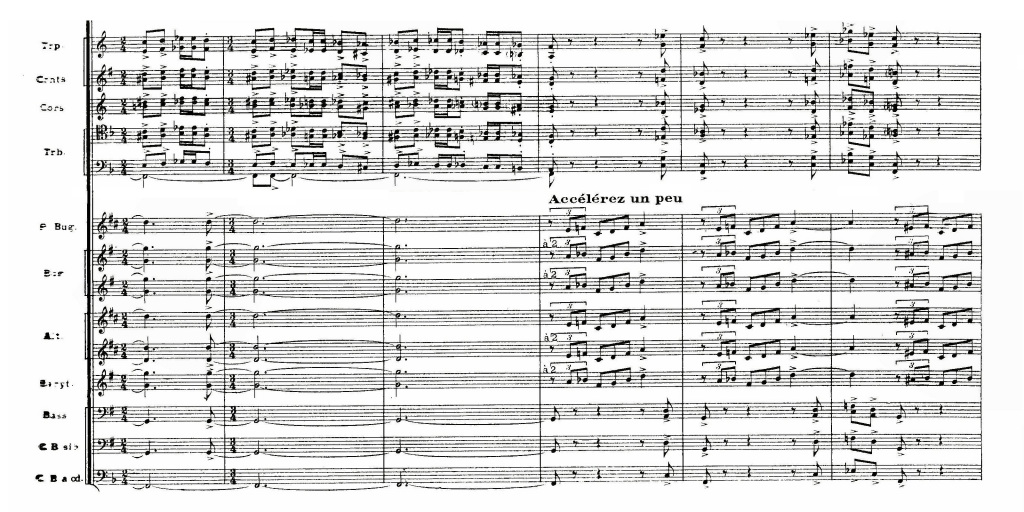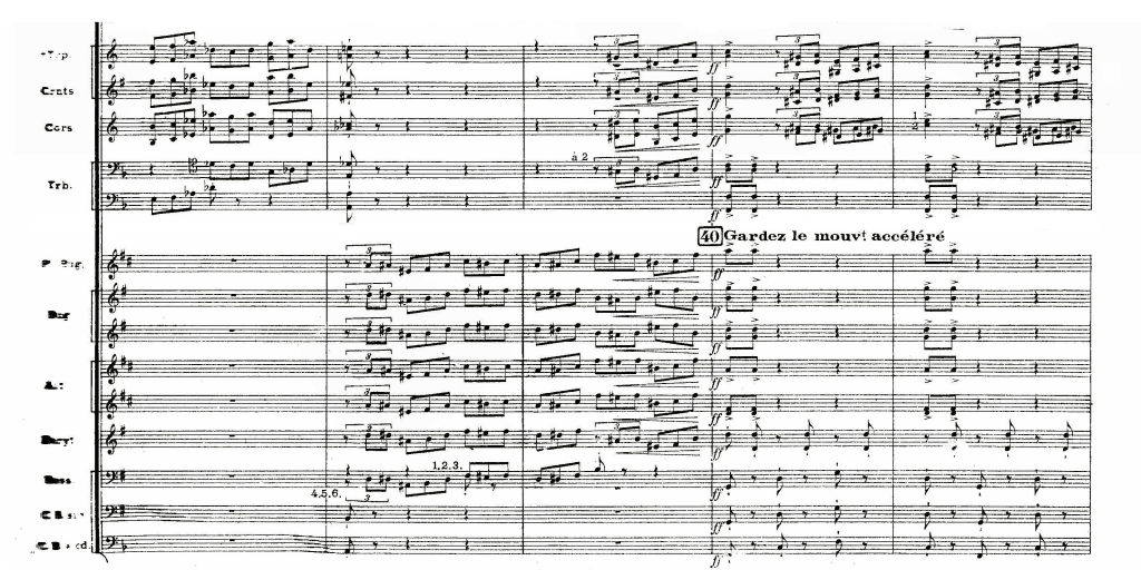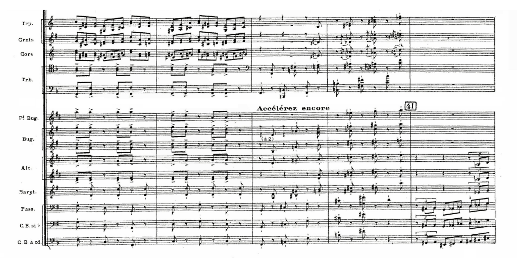 音源は、パリ・ギャルドのオリジナル演奏で、練習番号[37] 付近から再生するようにリンクを貼ってあります。