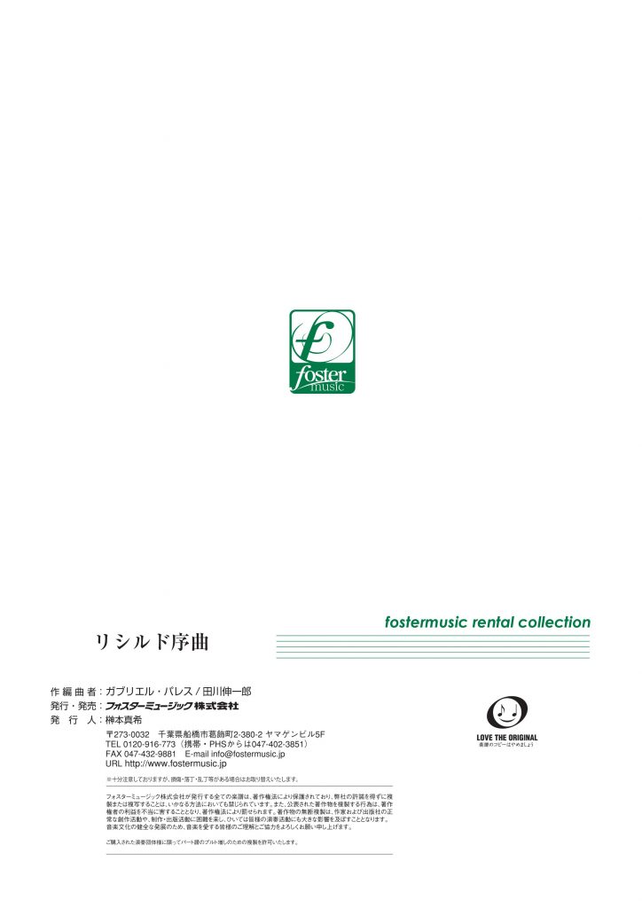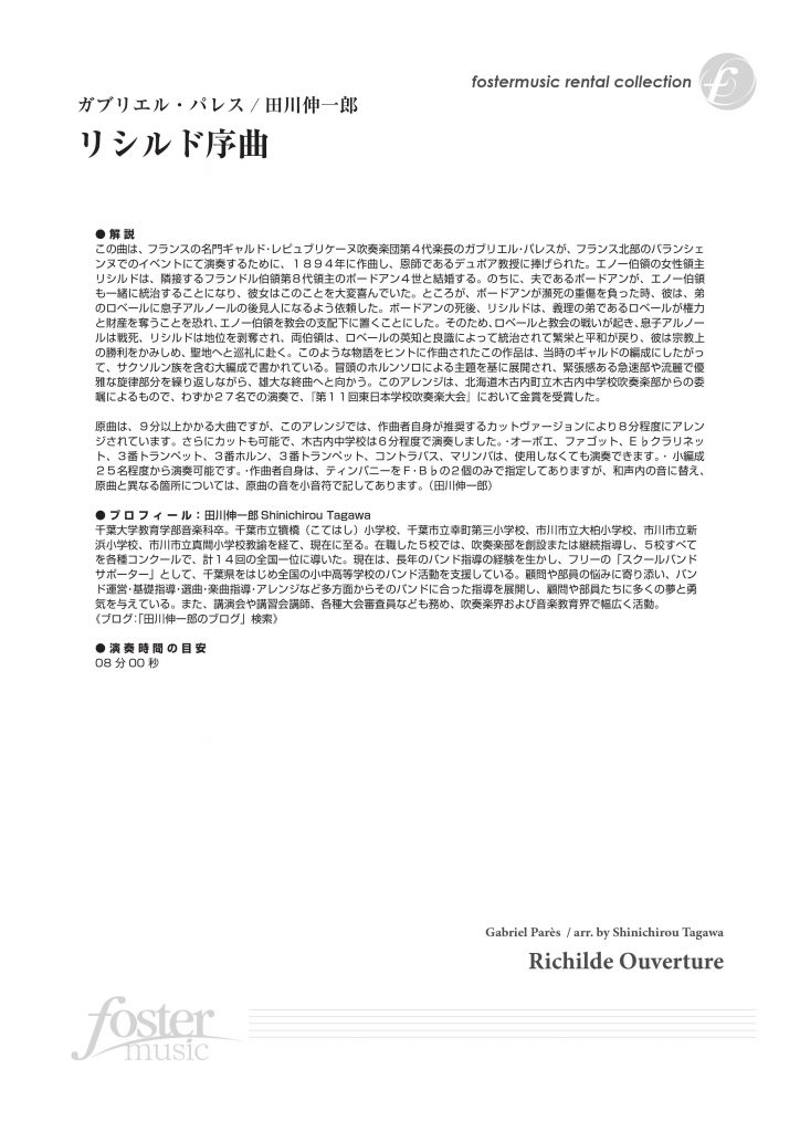 ここ最近、レッスンの合間をぬって手がけておりました、ガブリエル・パレス作曲の『リシルド』序曲の「小編成演奏可能版アレンジ楽譜」が完成しました。
