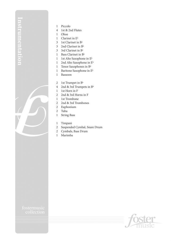 ・オーボ工、ファゴット、E♭クラリネット、3番トランペット、3番ホルン、3番トランペット、コントラバス、マリンバは、使用しなくても演奏できます。