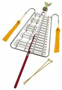 最近では “リラグロッケン” って呼んでいるようですが、鼓笛隊で使う、縦型の鉄琴です。